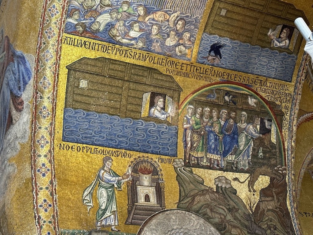 When you first enter St. Mark’s Basilica – you will see mosaics telling Old Testament stories like The Flood…some of the oldest mosaics in St. Mark’s are just inside the church.