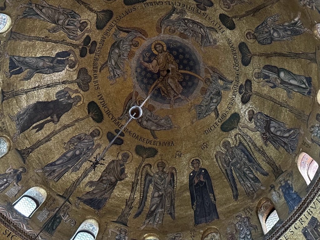 It is also interesting to note that given Venice’s wet climate (it is in the middle of a lagoon) – that mosaics were often preferred because they glass in the mosaics was not as threatened by potential water damage like tempera.