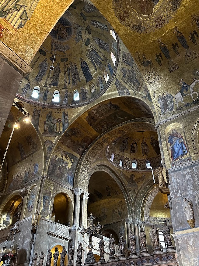 For an art history lover – nothing can quite prepare you for St. Mark’s. When I toured the Basilica in January of 2023, I knew the history and had studied pictures of the mosaics and art, but as I first stepped into St. Mark’s Square I knew nothing could prepare me for the wonder of St. Mark’s.